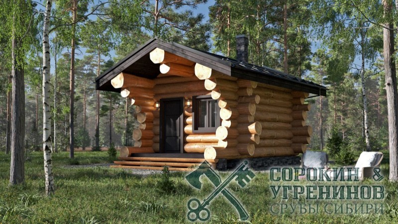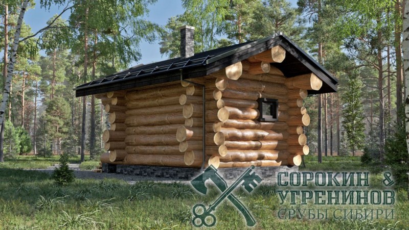 Небольшая русская баня рубленая из бревна кедра среднего размера площадью 20,9м2. Размер сруба 4,2х4,7 метров. Классический проект русской бревенчатой бани, сруб четырехстенок, внутренние стены предполагаются либо каркасные перегородки, либо брусовые или лафетные. Сруб рубленый вручную, канадская рубка, седловидный угол, из бревна сибирского кедра диаметром 280-320мм, бревно окоренное гидро-окоркой (водой под высоким давлением), а так, же это можно сделать скобелем или лопатой, либо строганное рубанком.