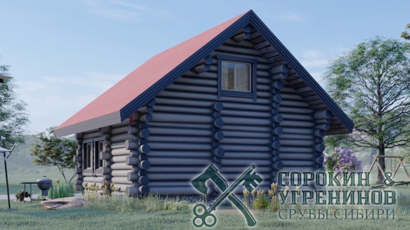 Проект дом-баня из бревна средним диаметром 260мм, размер сруба дома 7,8х9м, общая площадь дома 103м2, объём бревна в срубе 70м3. Дом-баня строился по индивидуальному проекту. Установка сруба производилась в Новосибирске в 2013 году в деревне Бугры.