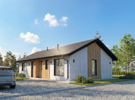 Для обеспечения лучшей шумоизоляции и приватности, кухня – гостиная (26 кв. м.) изолирована от спальных комнат (17, 14, 14 кв. м.) и пришедшие гости не помешают членам семьи захотевшим отдохнуть.
